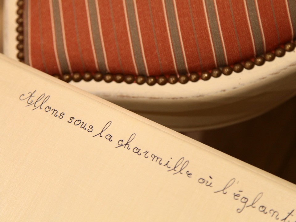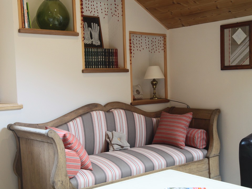 La chaleureuse présence du bois brossé qui habille le toit mansardé et les portes à œil-de-bœuf, les meubles en sapin ciré, le canapé franc-comtois hérité d'une aïeule, les patères et miroirs d'antan, le meuble de toilette alliant bois et marbre... autant de clins d'œil délicieusement rétro, comme un retour en enfance, comme une plongée dans les souvenirs. Voilà Charmille !